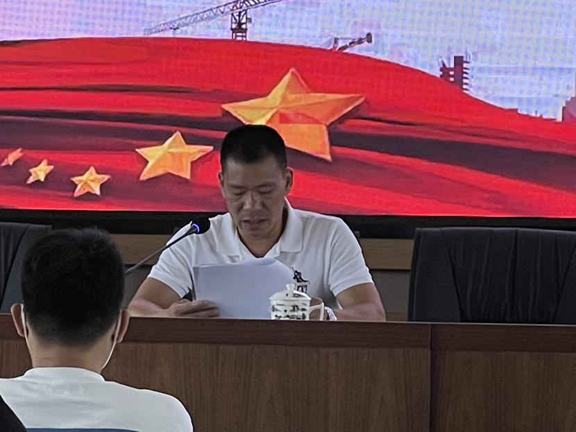 分管安全副總吳韶斌向大家宣貫《關(guān)于開展2022年市區(qū)建筑施工領(lǐng)域“安全生產(chǎn)月”活動的通知》等文件精神,將公司級“安全生產(chǎn)月”活動方案進(jìn)行交底,并對各項目“安全生產(chǎn)月”活動開展作出指示及要求。
